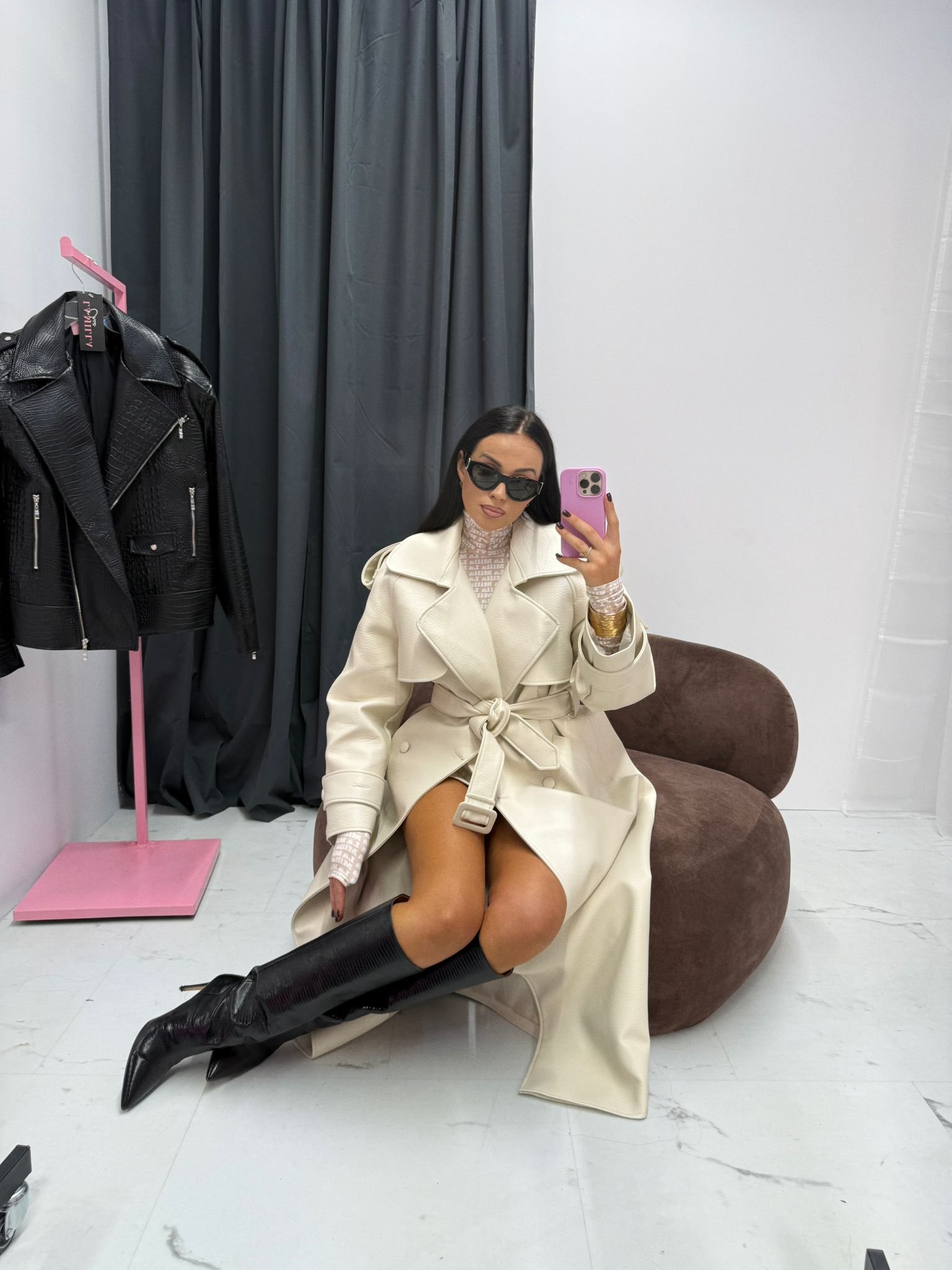 Coats made from the highest quality Italian eco-leather. Belt included.