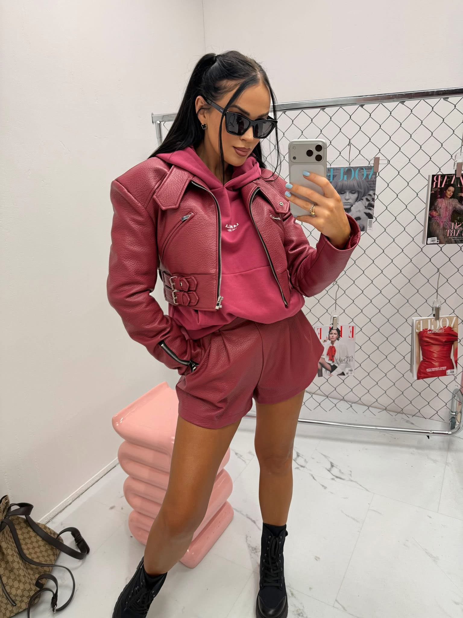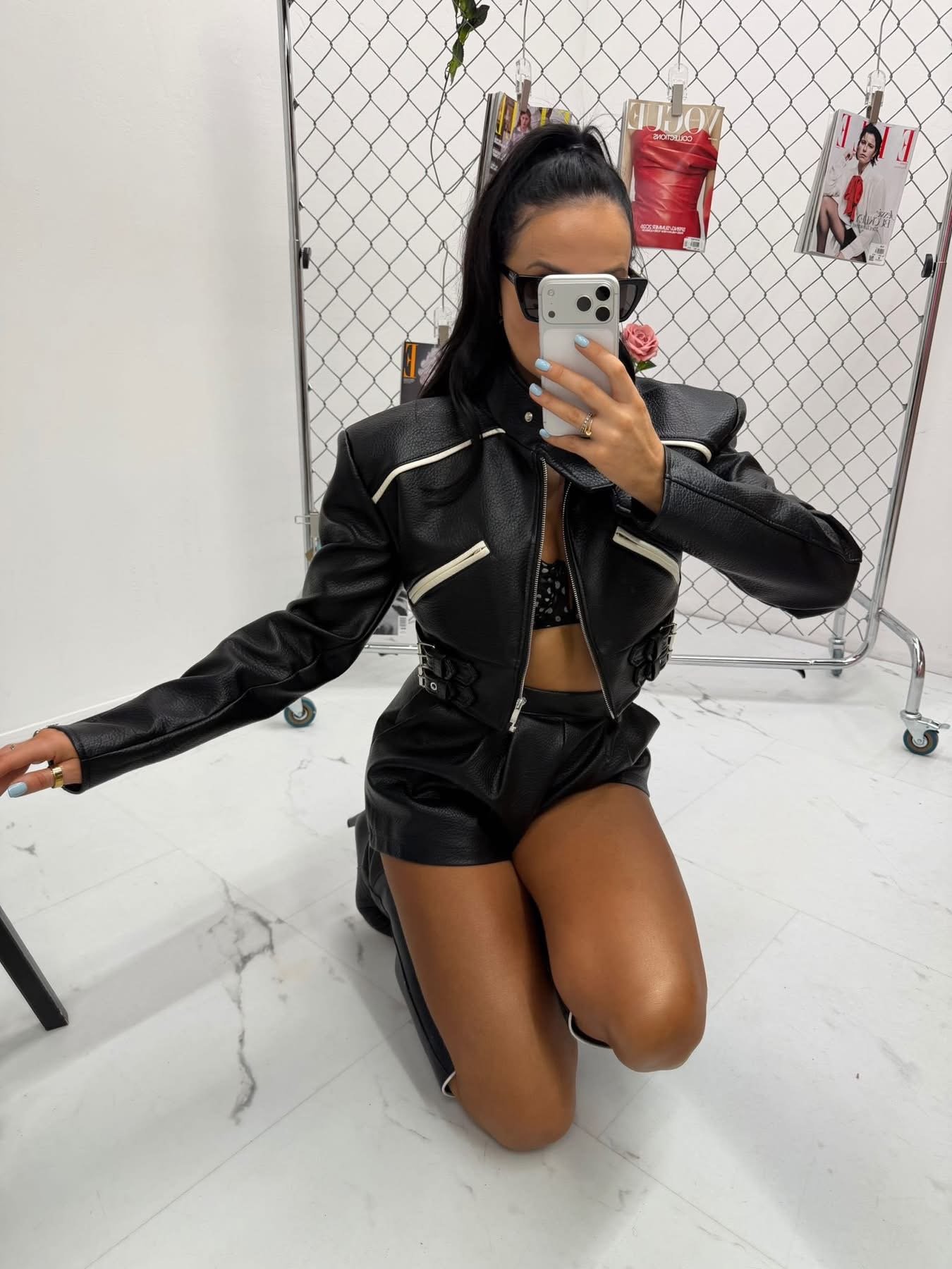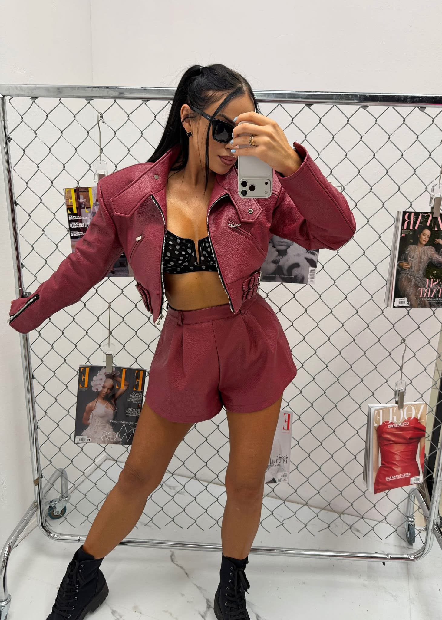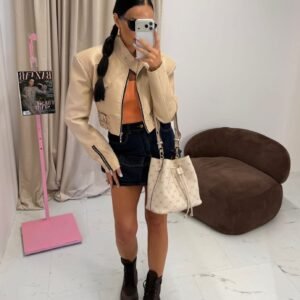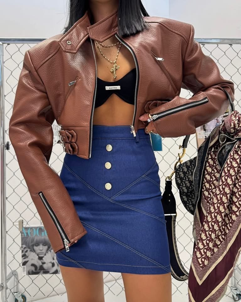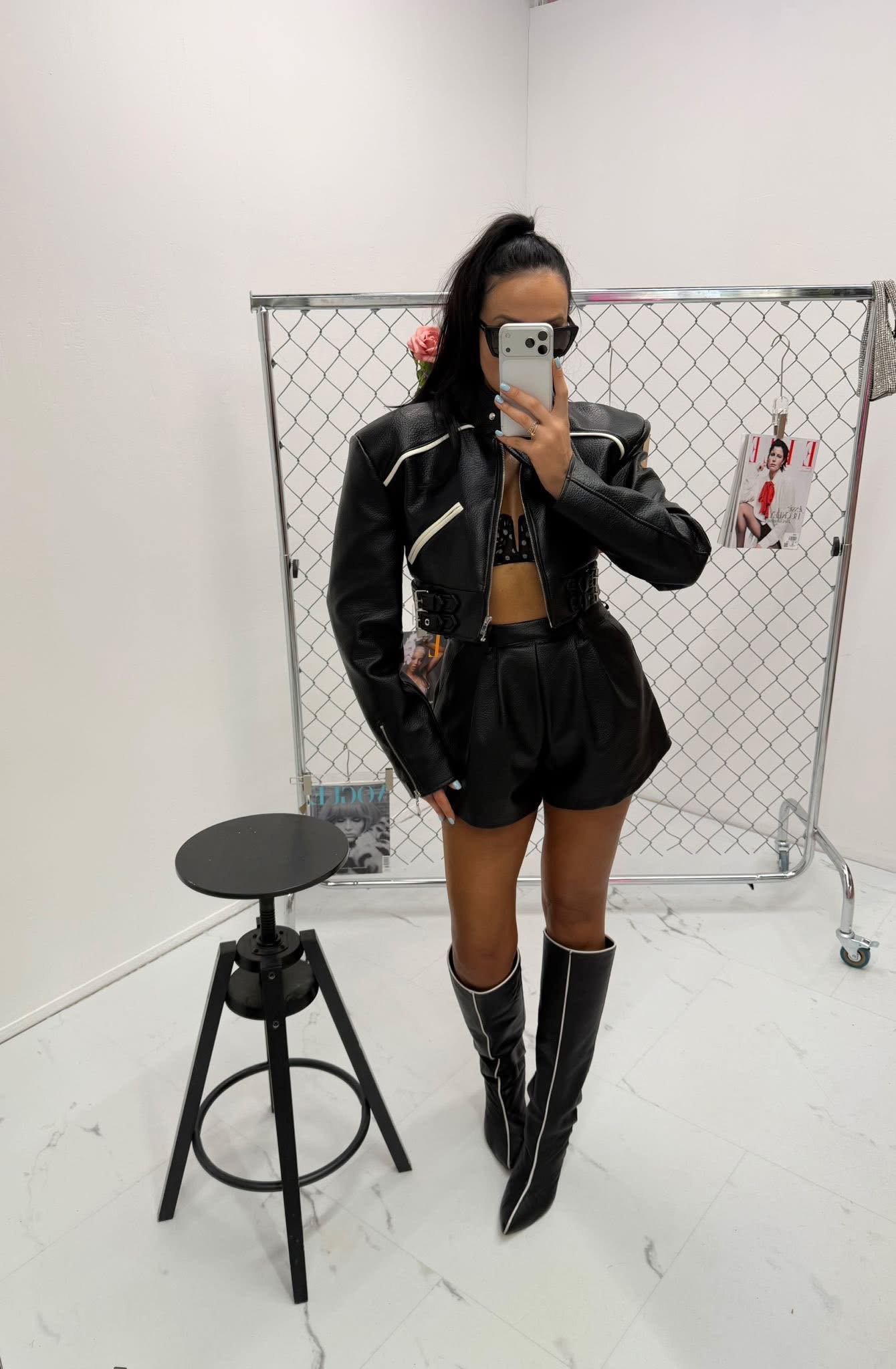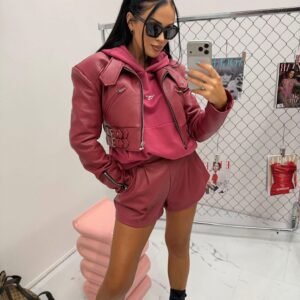Jackets made of the highest-quality Italian eco-leather. One universal size – recommended for XS, S, and M. Features decorative buckles.